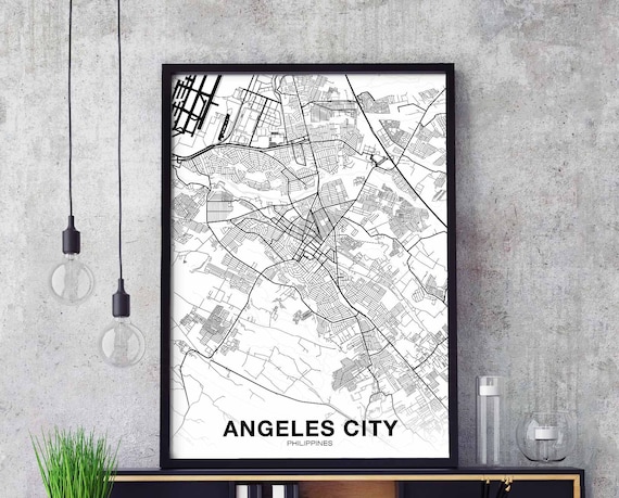 ANGELES CITY Philippines Map Poster Black White Hometown City