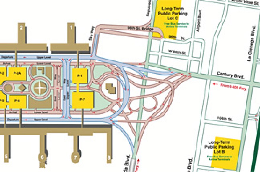 LAX Terminals airline and parking map for Los Angeles Airport.