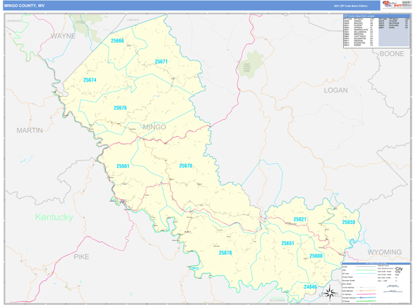 Mingo County, WV Carrier Route Wall Map Basic Style by MarketMAPS