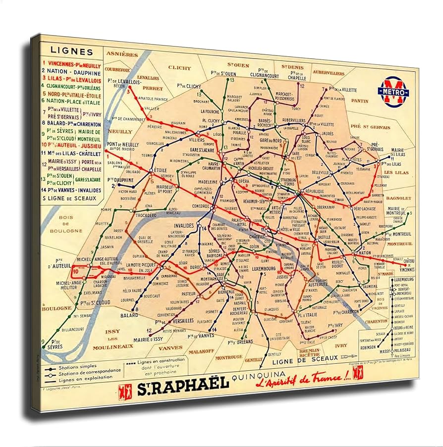 Amazon. Paris Metro Underground Map Print Poster Modern High