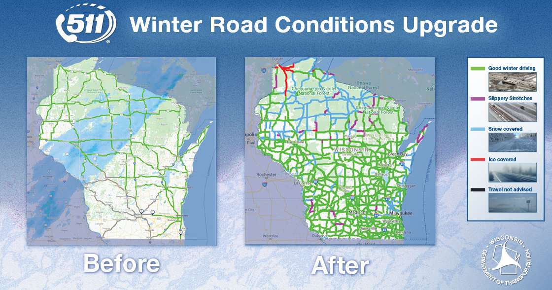 Wisconsin DOT on X: “The 511 WI map shows various winter road